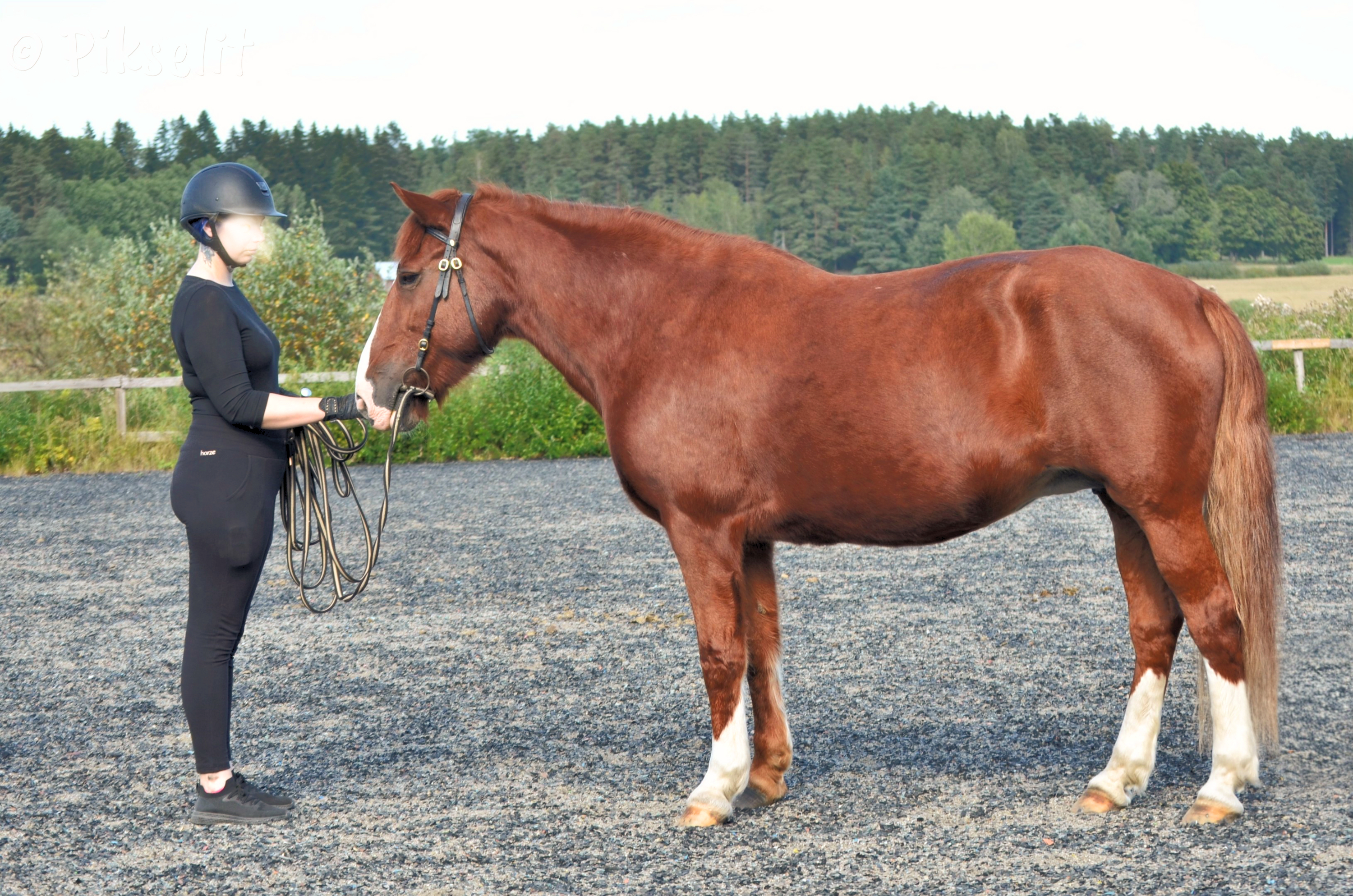Pakko sanoa, että niin ihana kuin Sukka onkin, se on jossakin vaiheessa elämäänsä oppinut yhden todella huonon tavan ja se on ruuan perään vetäminen. Kun se kerran oivalsi, että voi helpostikin vetää itsensä lapsen käsistä heinäpaalille, se yrittää sitä kyllä aina tilaisuuden tullen. Sukka on erittäin ruuan perään ja jos vastaan tulee houkutus, tamma ei epäröi käyttää voimiaan hyödykseen. Siksi Sukkaa taluttavat meillä vain aikuiset. Muuten sitä voivat huoletta helliä ja puunata lapsetkin ja tamma vain nauttii. Se nostaa jalkansa kuuliaisesti, kävelee pesupaikalle ja antaa laittaa varusteet ilman hampaiden kiristelyä.