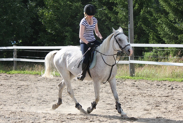 Alma on herkkyytensä vuoksi kokeneempien harrastajien hevonen. Vaikka useimmissa tilanteissa tamma onkin rauhallinen, niin kiihtyessään se on sähäkkä ja nopealiikkeinen. Sen reaktiot voivat suuntautua näissä tilanteissa yhtä lailla niin eteen, taakse, sivulle kuin ylöspäin. Ne ovat kuitenkin selvästi lientyneet aiemmasta ja olemme oppineet aika hyvin ennakoimaan ja ehkäisemään kierrosten nousua aiheuttavia tilanteita tai ainakin katkaisemaan ne ennen kuin tulee isoin reaktio. Alma on rohkea, eikä juuri välitä ympäristön ärsykkeistä, mutta se on herkkä nimenomaan ratsastajan suunnalta tulevalle paineelle. Kaikista suurin ahdistus tammalle iskee, jos ratsastajaa laittaa siihen painetta, mutta samaan aikaan jää pitämään niin, ettei se pääse ns. poistumaan paikalta. Alman kanssa onkin tärkeää, että jos sitä pyytää eteenpäin, täytyy ohjasta myödätä mieluummin vaikka vähän liioitellusti, jotta sille ei tule sellainen nurkkaan ahdistettu olo, mikä laukaisee siinä taistele tai pakene -reaktion. Oikean ratsastajan kanssa Alma on notkea kouluratsu, näppärä ja nopea esteratsu sekä reipas maastoratsu, jonka selässä matka taittuu ripeästi. Tamma kuumuu hyppäämisestä sen verran, ettei sovi ihan kaikkien käteen. Sillä on taipumusta pitkiin, mutta vähän laakoihin tiikerinloikkiin ja se yrittää helposti lähteä hyppyyn vähän kaukaa. Maastossa Alma on nopea, rohkea ja ketteräjalkainen, mutta varsinkin porukassa se myös kuumuu melko herkästi.