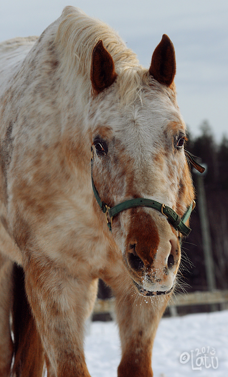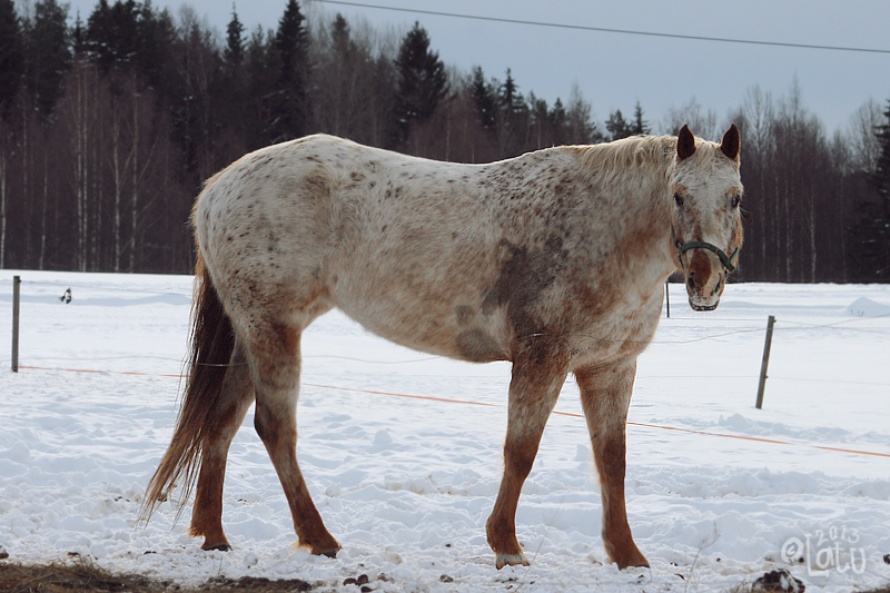 Hoitaessa Dottis on aika lungi tyyppi, kunhan sitä ei laita liian lähellä muita hevosia. Ihmisille tamma on kiltti, mutta muita hevosia kohtaan aika tammamainen - tai no, suoraan sanoen kärtty. Se saattaa jo kaukaa irvistellä etenkin ruunille ja muillekin henkilökohtaisille inhokeilleen. Yksi poikkeus on Mandi, josta Dottis pitää ja sen kanssa ne voivat kulkea vaikka kiinni toisissaan, eikä Dottista haittaa yhtään. Harjaaminen ja kavioiden puhdistus sujuu ilman ongelmia ja varustaessa tamma useimmiten nuokkuu. Paarmoille Dottis on jonkin verran herkkä ja pahimpaan paarma-aikaan sen takapäätä kannattaa vähän varoa, sillä niitä potkiessaan se ei välttämättä huomaa ihmistä. Taluttaessa Dottis on verkkainen kulkija ja sitä on aivan turhaa yrittää hoputtaa, madam tulee omaa vauhtiaan. Maasta käsin se kyllä tykkää tehdä hommia porkkanapalkalla ja Dottiksen kanssa onkin hyvä harjoitella niin lastaamista kuin loimitusta, koska tamman kanssa on harjoiteltu perusasiat tosi hyvin ja se hallitsee ne hermoilematta tai hötkyämättä ollenkaan.