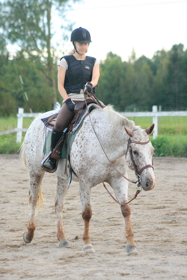 Dottis on tasainen ja lehmänhermoinen tamma, ainakin mitä tulee ympäristöön. Takaa voi kiihdyttää lähtevä lentokone tai viereen laskeutua kuumailmapallo ja tämä tamma korkeintaan kääntää toisen korvansa sinne suuntaan, jos viitsii. On silti yksi asia, mille Dottis on herkkä - ja se on ratsastajan kova käsi. Sillä tamman saa viskelemään päätään ja vastustelemaan ratsastajan apuja. Kuitenkin tamma on anteeksiantavainen ja heti kun ohjasta osaa hellittää tai vakauttaa oman käden, kuin taikaiskusta Dottis lopettaa pään heittelyn ja liikkuu nätisti eteenpäin. Itse asiassa Dottis toimii varsin hyvin jopa ilman ohjastuntumaa, pohje-, paino- ja ääniavuilla. Mikään liikeihme tai vauhtihirmu Dottis ei ole, mutta sen saa suorittamaan tasaisen sievästi kaikki tehtävät koulukiemuroista ja estehommista WE-tehtäviin ja jopa westernin perusasioihin. Sillä on kiva myös mennä ilman satulaa tai lähteä maastoon. Maastossa Dottis on ehkä varmin tallin hevosista. Koulutunneilla Dottis kulkee kuuliaisesti, mutta sitä joutuu ehkä hieman kannustamaan, jotta siitä saisi kaikki tehot irti. Tamman askeleet ovat tosiaan aika matalat ja energiatehokkaat, eikä siltä kovin lennokasta liikettä edes saa. Dottiksen bravuurina ovat kaikenlaiset sivuttaisliikkeet, tasajaloin pysähdykset sekä peruutukset. Myös tasaiset, tarkat siirtymiset ovat tämän hevosen vahvuuksia. Esteillä Dottis sopii aremmallekin hyppääjälle, koska tämä tamma ei ainakaan ylihyppää ikinä ja sitä on vaikea saada millään tavoin kuumumaan. WE-hommat ovat Dottikselle mieluista puuhaa ja ne se suorittaa melkein ratsastajan puolesta vaikka unissaan.