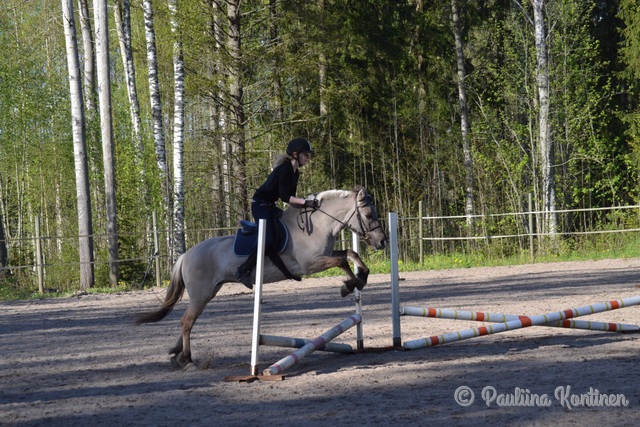 Fiina on omalla tavallaan hyvin herkkä ja hieno, muttei mitenkään automaattinen ratsu. Se vaatii ratsastajalta puristamattoman pohkeen, muuten sillä menee kuppi nurin aika nopeasti, jolloin alkaa jumittelu ja vastustelu. Tuntuman suhteen Fiina ei ole yhtä herkkä, sitä ei haittaa pyykkinaruna heiluva ohja, mutta se sietää myös napakamman tuntuman ongelmitta. Sinällään ratsastajan kokemuksella ei ole niin merkitystä, se voi mennä tosi kivasti niin aloittelijalla kuin kokeneella, kunhan ratsastajan pohje vaan ei yhtään jää puristamaan. Parhaimmillaan Fiina onkin kevyesti liikkuva ja herkästi apuihin reagoiva ratsu, joka tuntuu toimivan lähes telepatian voimalla. Onkin hauskaa seurattavaa, miten hienosti Fiina saattaa kulkea aloittelevan lapsen alla, joka ei vielä edes osaa pitää ohjia kunnolla tuntumalla saati vaatia hevoselta mitään, pohkeetkin vain hölskyvät löllöinä satulasiipien kohdalla ja silti tamma tekee ratsastajan kanssa täydellisen pyöreät voltit ja siistit ravisiirtymiset. Fiinan hyppytekniikka ei ole paras mahdollinen, mutta itsevarmaa asennetta sen sijaan löytyy. Se ei jää ihmettelemään, vaan menee vaan. Vaikka sen toisi vähän huonolla tiellä tai turhan kiireisessä temmossa, niin tamma saa yleensä itsensä hoidettua esteen yli tavalla tai toisella. Jos tie on aivan mahdoton, Fiina saattaa viime hetkellä kieltäytyä hyppäämästä, mutta harvoin tätä tapahtuu. Maasto-ratsuna Fiina on reipas ja rohkea, mutta mutaiset kohdat se kiertää tai loikkaa yli. Siitä tamma on ihana, että sen kanssa voi aika huoletta painella laukkaa pitkin ohjin pitkin metsäteitä ja vain luottaa siihen.